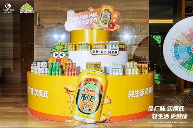 本次峰会上,廣氏同步发布廣氏&恒顺万氏顺菠萝醋饮料、廣氏雪梨海底椰、廣氏咸柑桔、廣氏无限量运动饮料、廣氏菠萝啤果味型汽水多款健康新品,进一步丰富产品矩阵,为市场拓展提供支撑。新品均以岭南风物为原料,融合传统广味工艺与现代健康理念,覆盖多元消费场景,尤其契合“怕油怕辣怕腻”的消费需求,既能满足华南消费者传统口味,也能适配省外饮食偏好,成为“省外破圈”的重要产品载体。