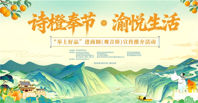 为进一步深化“品牌强县”战略,提升区域公共品牌影响力,一场名为“奉上好品”进商圈的宣传推介活动于2026年3月27日至29日,在重庆市两江新区观音桥商圈(南端)隆重举办。本次活动以“诗橙奉节·渝悦生活”为主题,旨在将“奉上好品”的甜蜜与匠心,从长江之畔的诗城奉节,直接呈现在主城繁华商圈市民与游客的面前。